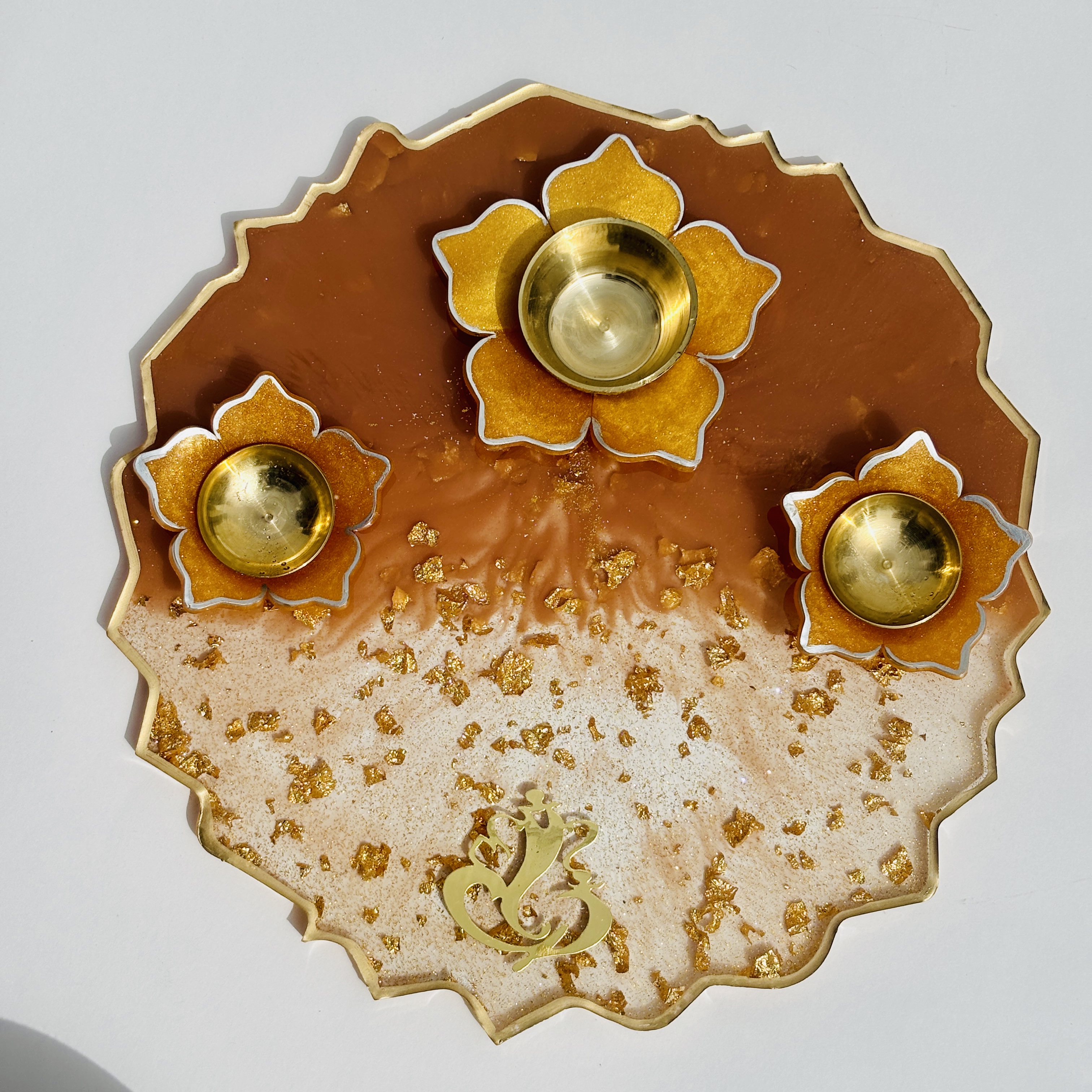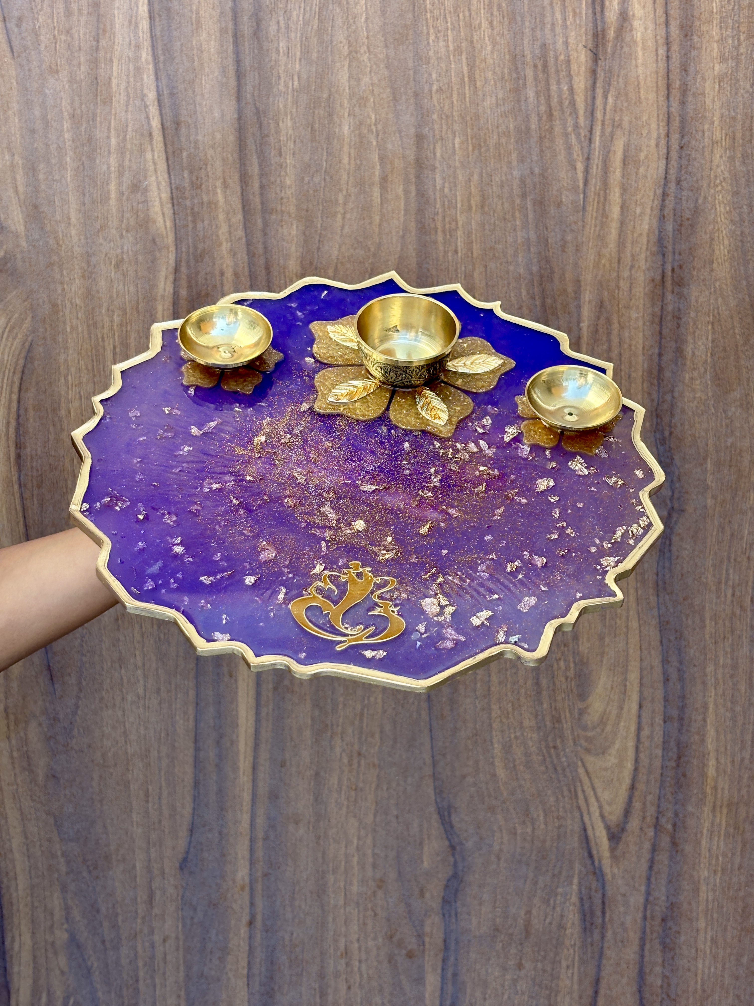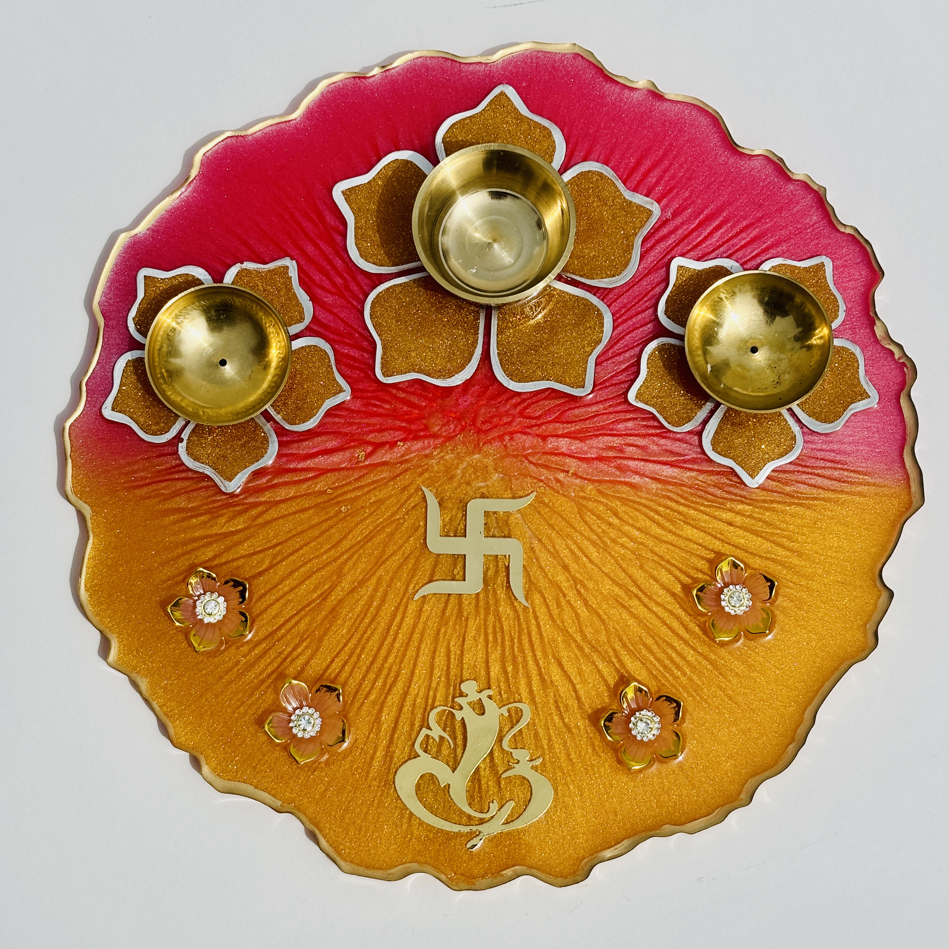 Handcrafted Resin Pooja Thali – 10 Inch Size: Beautifully handmade resin thali with elegant color & traditional design — perfect for Diwali, Laxmi Puja, or home temple decor.