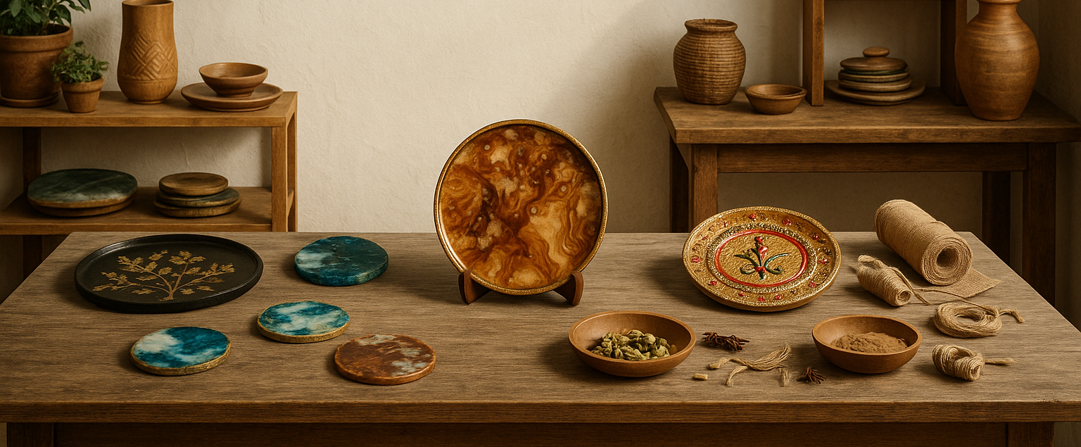 From handcrafted resin trays to premium pooja thalis and personalized wedding platters, our artisans craft exclusive custom creations — designed uniquely for you.